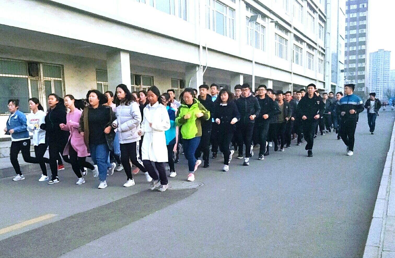 迎着暮春的朝阳,材冶学院团总支学生会全体成员进行了新学期的早训。