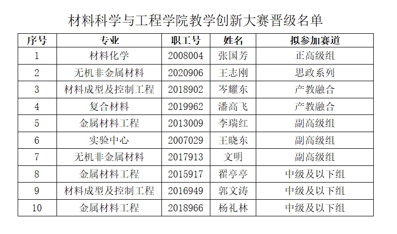 2025年1月9日,我院在明德楼D201会议室举办了学院教师教学创新大赛,经过激烈的角逐和专家评审,最终共有10名教师晋级校赛,名单公布如下: