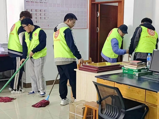 在我院的每一个角落都能看到志愿者的身影,志愿者干劲十足,拿着清理工具有条不紊的忙碌着,看着地面越来越干净,四周越来越整洁,到处都是热火朝天的劳动景象。忙碌了整个下午,即便志愿者们汗如雨下,但他们为学院同学服务的精神没有一丝一毫的衰减。在大家的努力下,学院环境变得焕然一新。