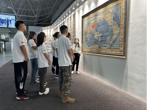 7月14日,材料与冶金学院“你好”支教团的队员们首先前往青海圣源地毯集团有限公司,在讲解员的带领下,首先步入圣源地毯展厅重温习近平总书记于2021年6月7日考察调研时的讲话视频,随后来到生产车间,详细了解藏毯从设计到制作完成的一系列生产工序,近距离感受非物质文化遗产带来的震撼。在视觉和触觉的双重体验中,团队成员切实体会到了习近平总书记对地方特色产业发展的关心,也感受到了“圣源地毯”对于民族范、国际范、传统范、现代范、特色范、优质范的恪守和坚持。在“圣源地毯”的参观学习,让队员们领悟到创新发展与非物质文化传承的智慧,体会到当地产业的发展魅力。