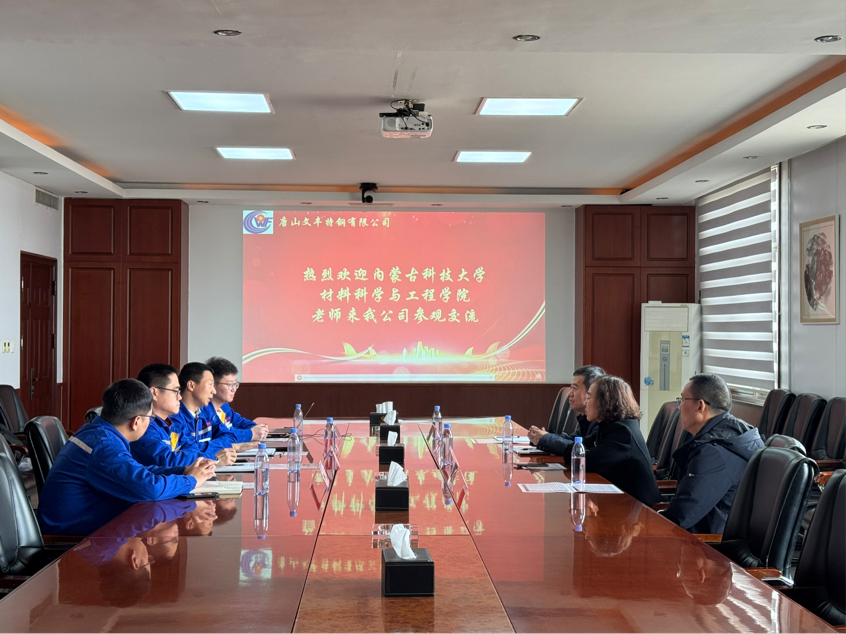 为深入贯彻落实“访企拓岗促就业”专项行动,进一步提升学院人才培养质量和服务社会能力,全力拓宽毕业生就业渠道,3月10日至3月14日,yl8858永利集团材料系教授计云萍、成型系教授张建飞、无机系系副主任郜建全以及学工办负责就业的辅导员吕布一行四人赴唐山文丰钢铁集团有限责任公司、唐山瑞丰钢铁(集团)有限公司、中航上大高温合金材料股份有限公司、中信渤海铝业控股有限公司开展“访企拓岗促就业”专项行动。
