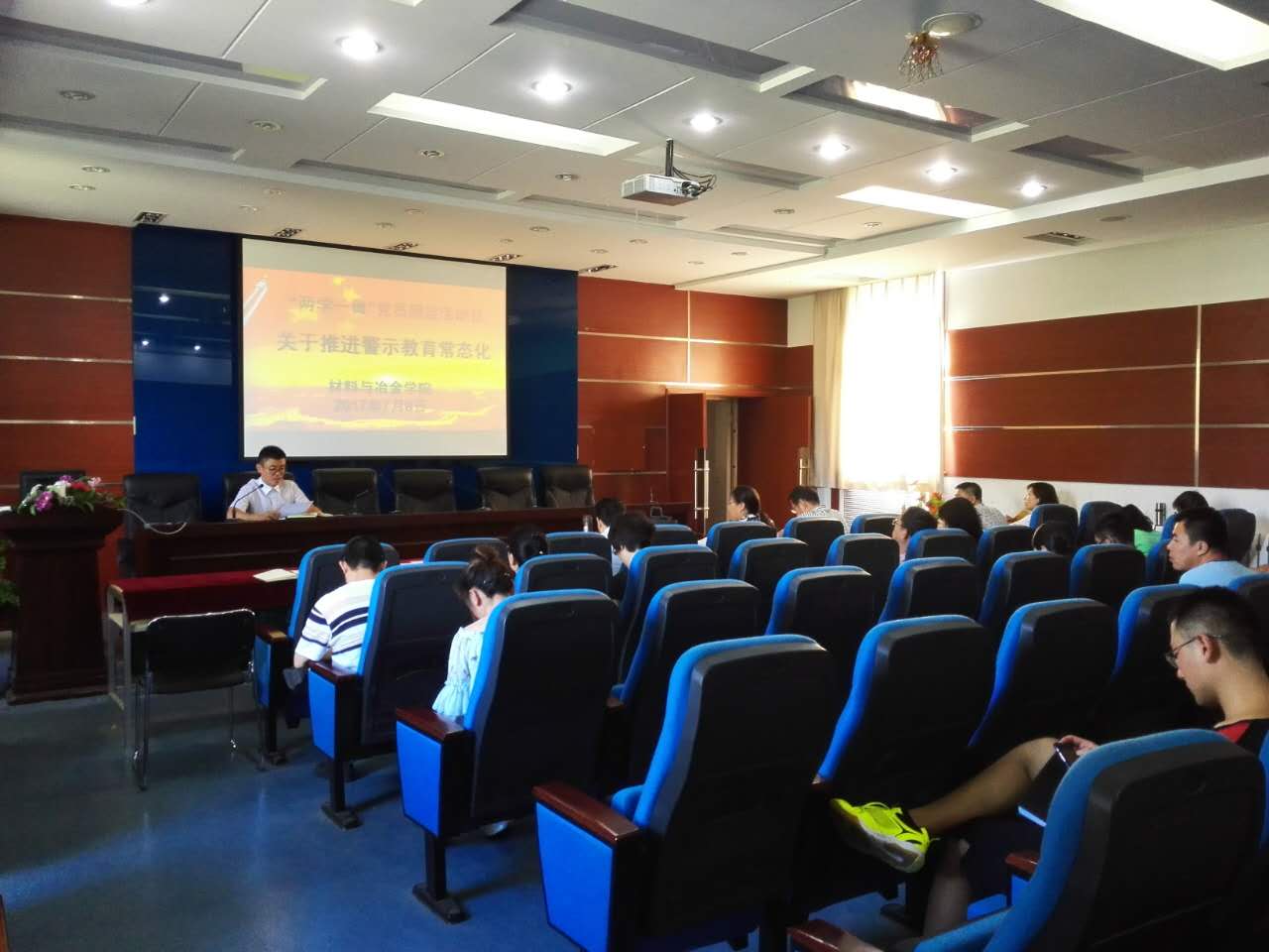 7月6日下午,党总支副书记副院长张鑫在院学术报告厅,主持召开了关于“推进警示教育常态化”全院党员大会。